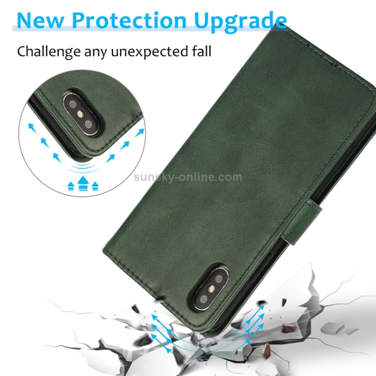 Funda para iPhone Xs Max Calf Texture 2 en 1 Cubierta Trasera Magnética Desmontable con Tapa Horizontal y Soporte (Verde)