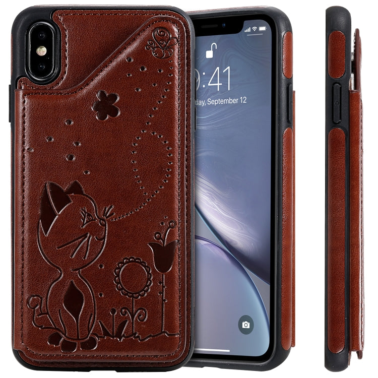 Estuche protector iPhone Xs Max Cat Bee relieve patrón a prueba de golpes con ranuras para tarjetas (Marrón)