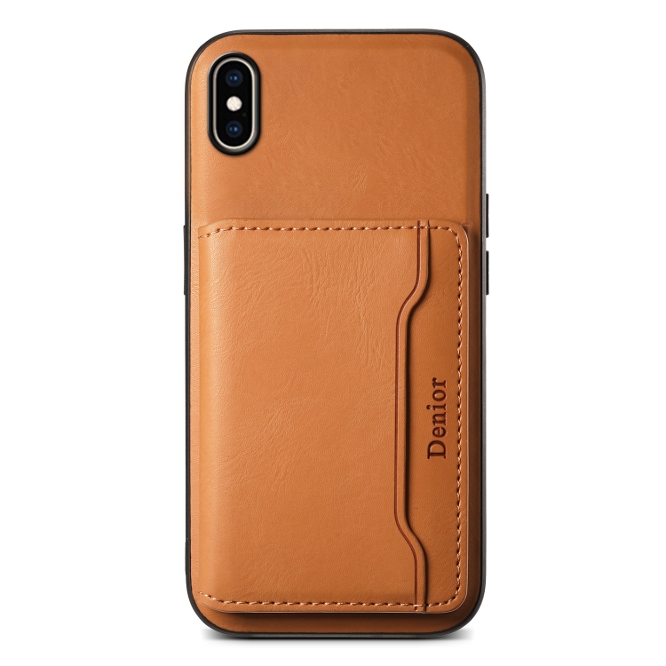 Funda para Teléfono Denior iPhone Xs Max con Billetera Desmontable Magsafe Cuero Textura Piel de Vaca (Caqui)