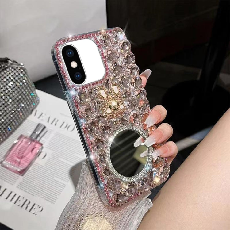 Funda para Teléfono iPhone Xs Max Diamond Mirror Bunny Hecha a Mano para PC (Espejo Redondo Rosa)