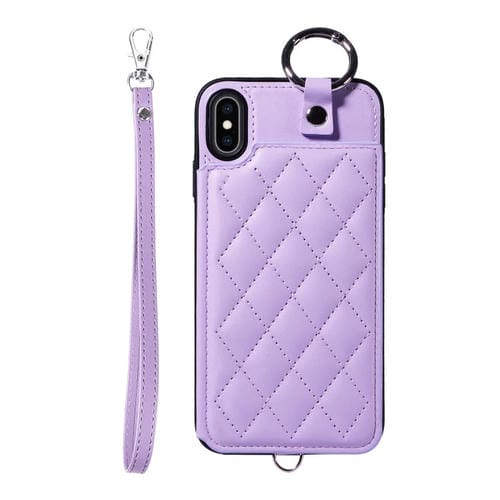 Estuche para Teléfono iPhone Xs Max Bolsa para Tarjetas Textura Rómbica Cordón Corto (Púrpura)