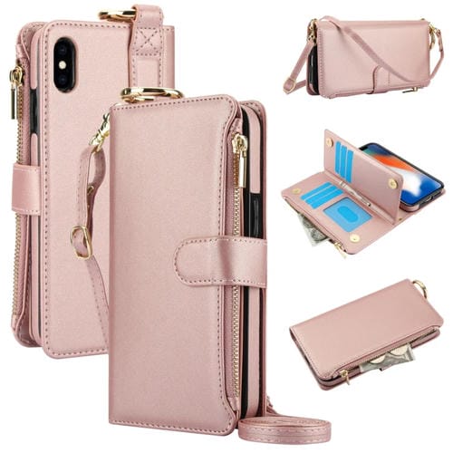 Estuche para Teléfono iPhone Xs Max Cuero Billetera Multifuncional Anillo (Oro Rosa)