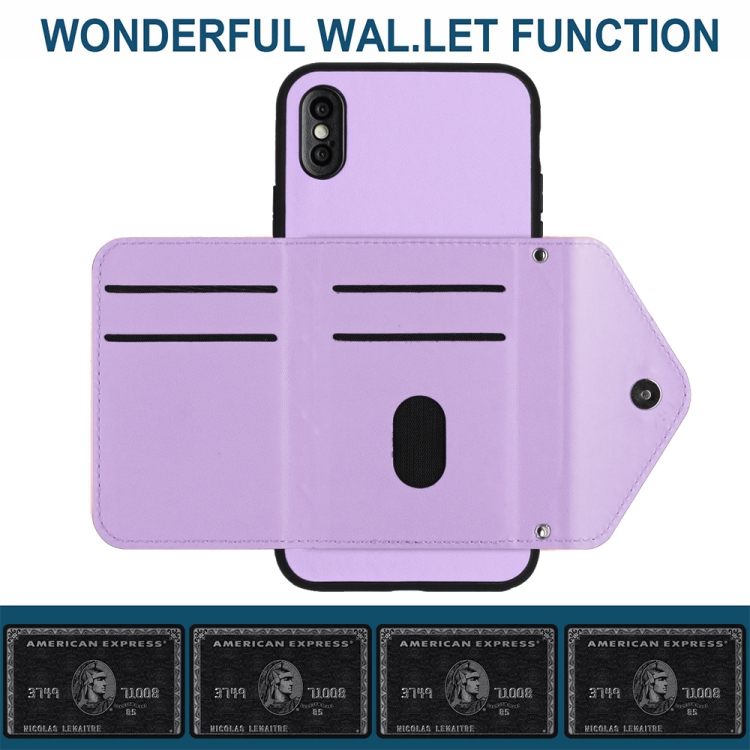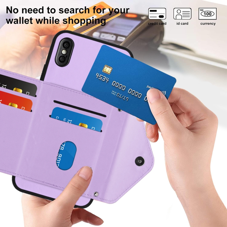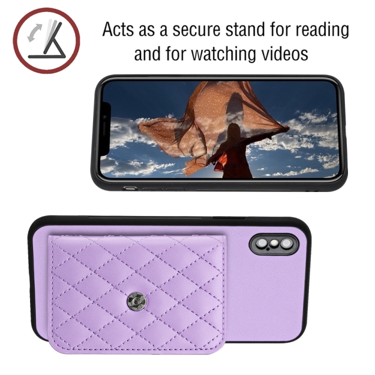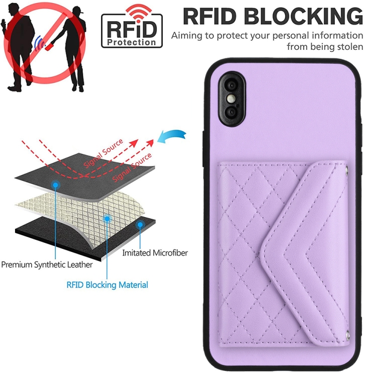 Estuche para Teléfono iPhone Xs Max Rfid con Bolsa para Tarjetas Textura Rómbica y Cordón Largo (Púrpura Claro)