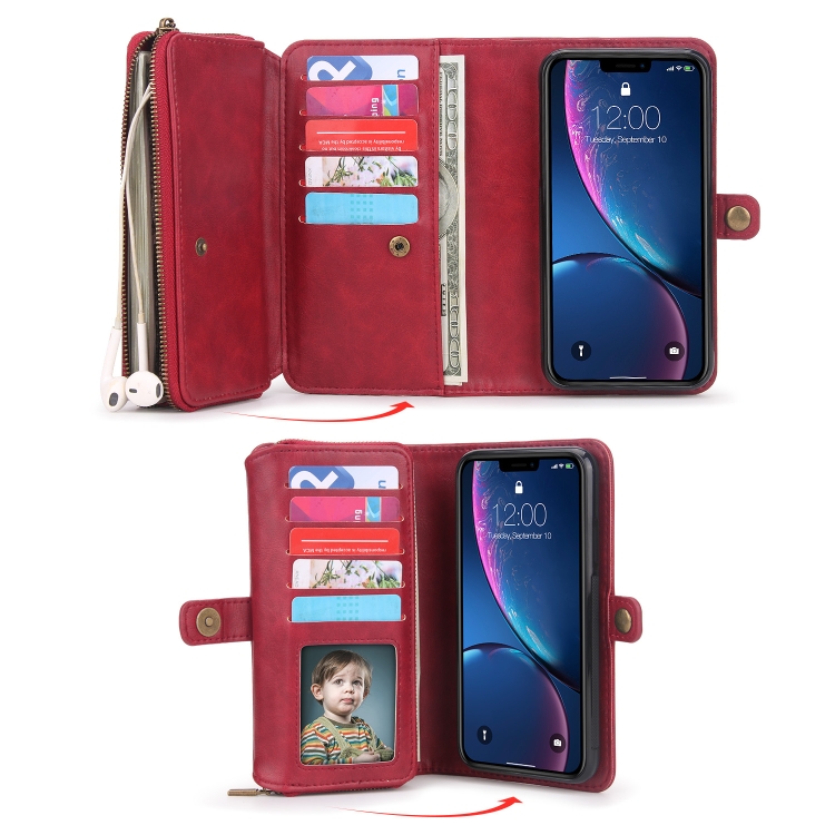 Funda para Teléfono iPhone Xs Max Cuero con Billetera y Cremallera Multifuncional (Rojo)