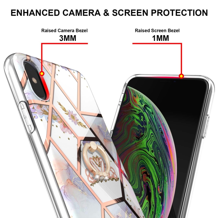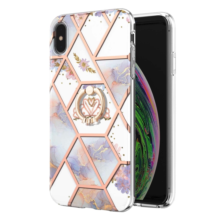 Estuche TPU iPhone Xs Max Galvanoplastia Empalme Mármol Patrón de Flores Soporte Anillo (Corona Imperial)