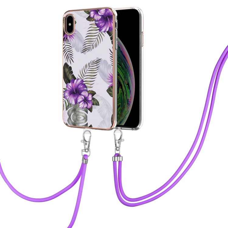 Estuche TPU para iPhone Xs Max Galvanoplastia Patrón Imd a Prueba de Golpes con Cordón (Flor Púrpura)