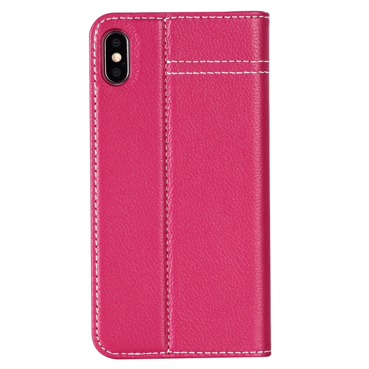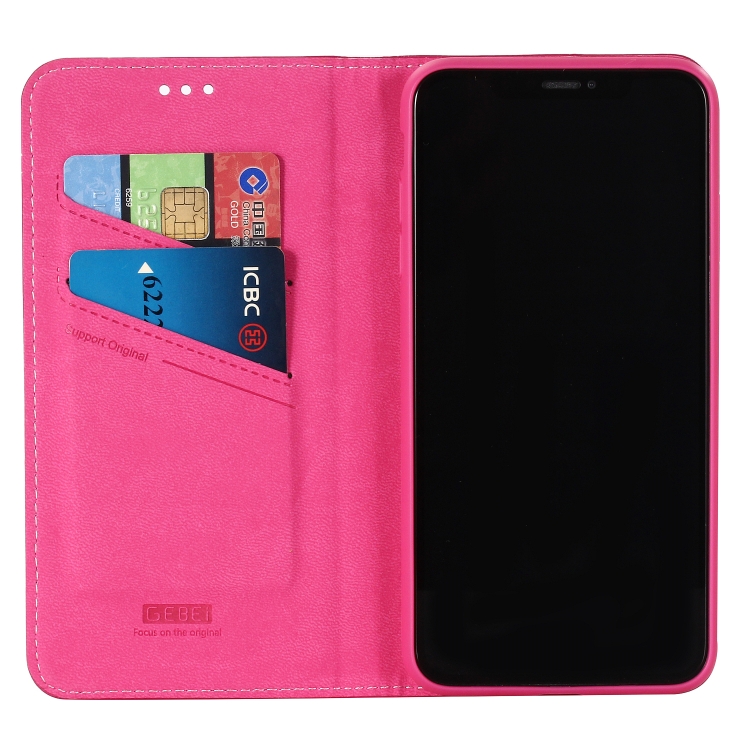 Funda Protectora Gebei para iPhone Xs Max con Tapa Horizontal Cuero Grano Superior Soporte y Ranuras para Tarjetas (Rosa Roja)