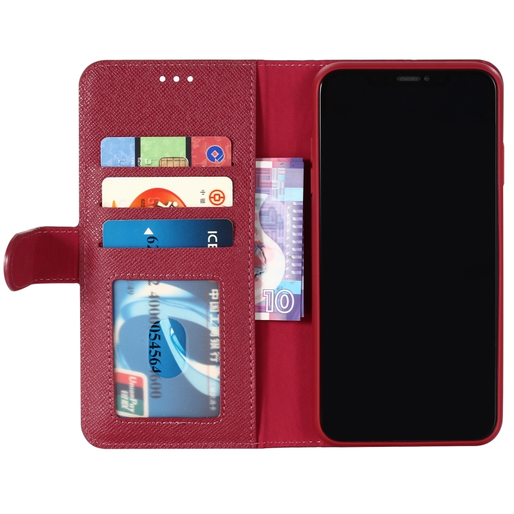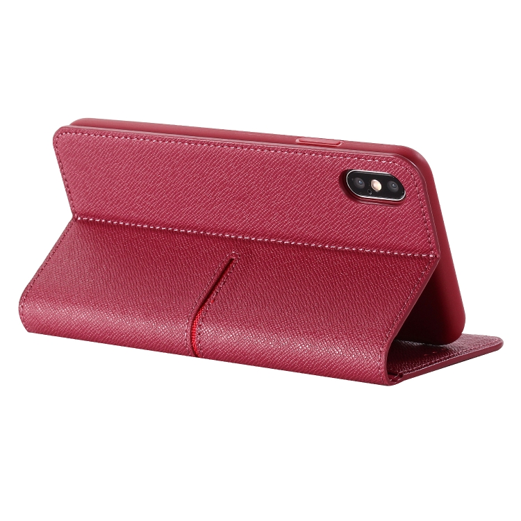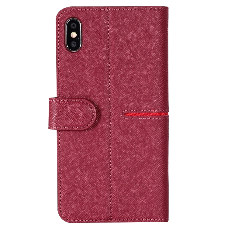 Funda Protectora Gebei para iPhone Xs Max con Tapa Horizontal de Cuero de Grano Superior Soporte Ranuras para Tarjetas Billetera y Marco de Fotos (Vino Tinto)