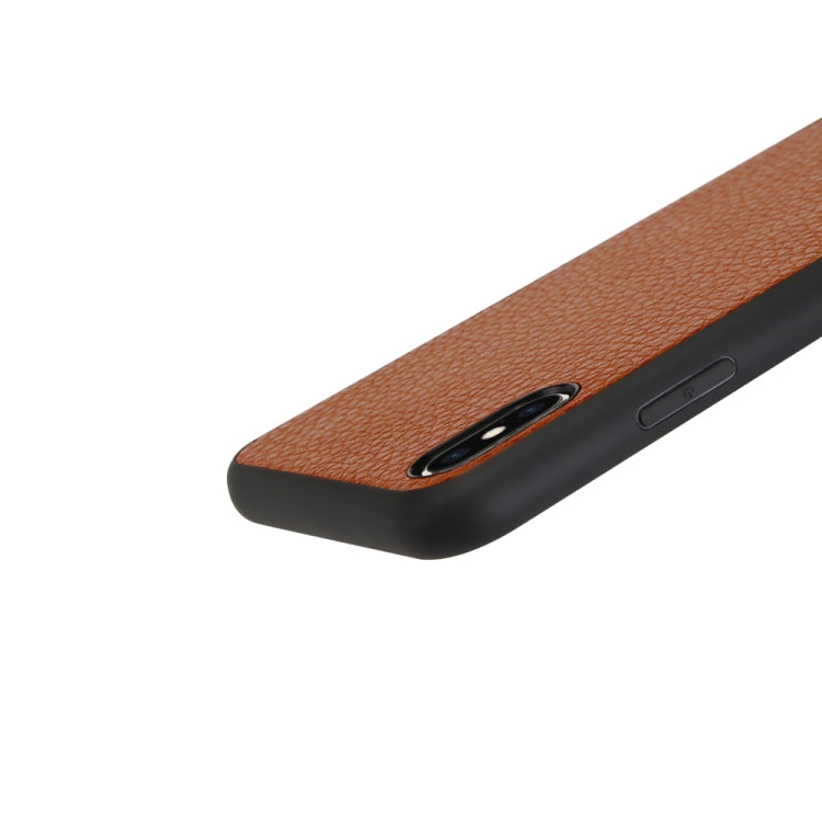 Funda Protectora para iPhone Xs Max Litchi PU TPU Anticaída de Cuero (Marrón)
