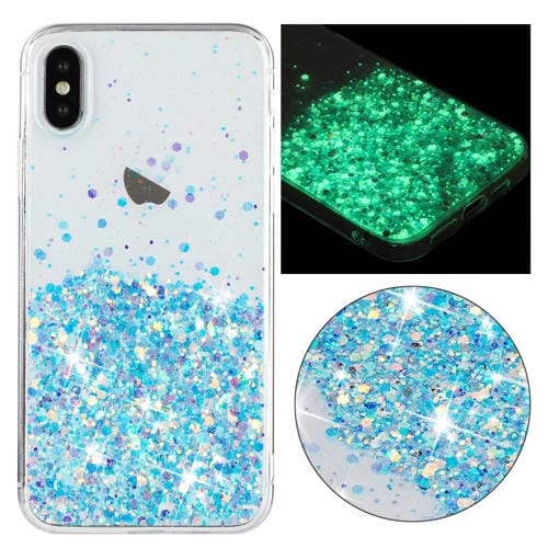 Funda para Teléfono iPhone Xs Max TPU Marco Transparente Noctilucent Glitter Powder (Azul)