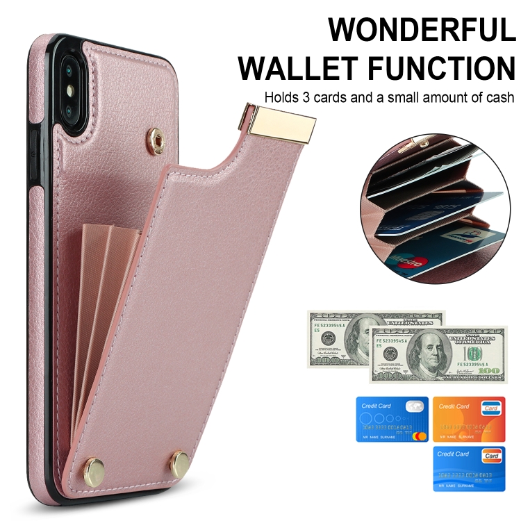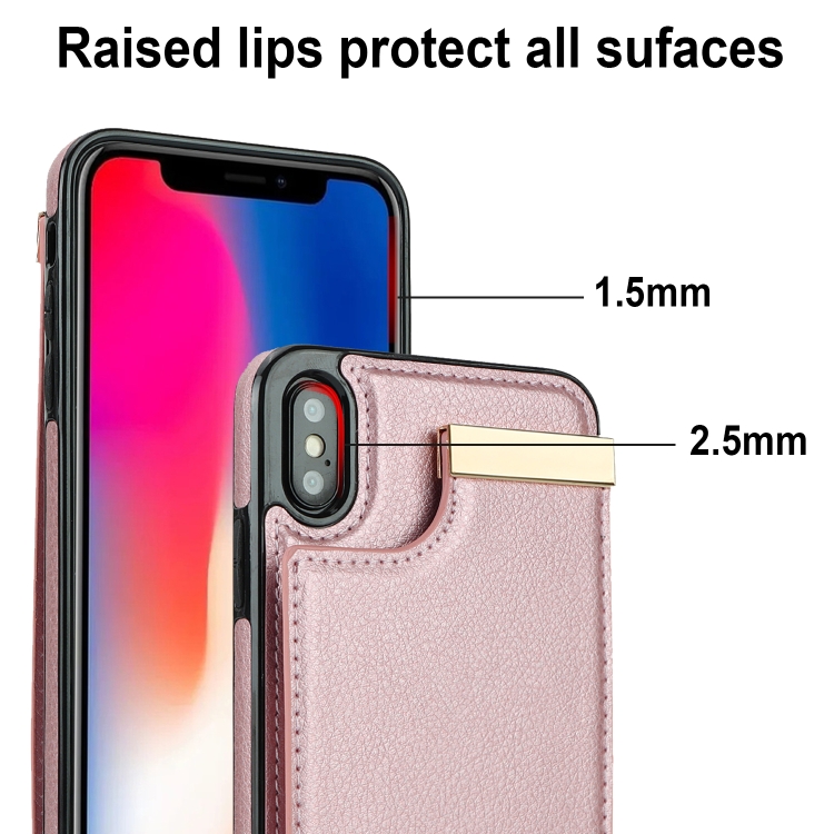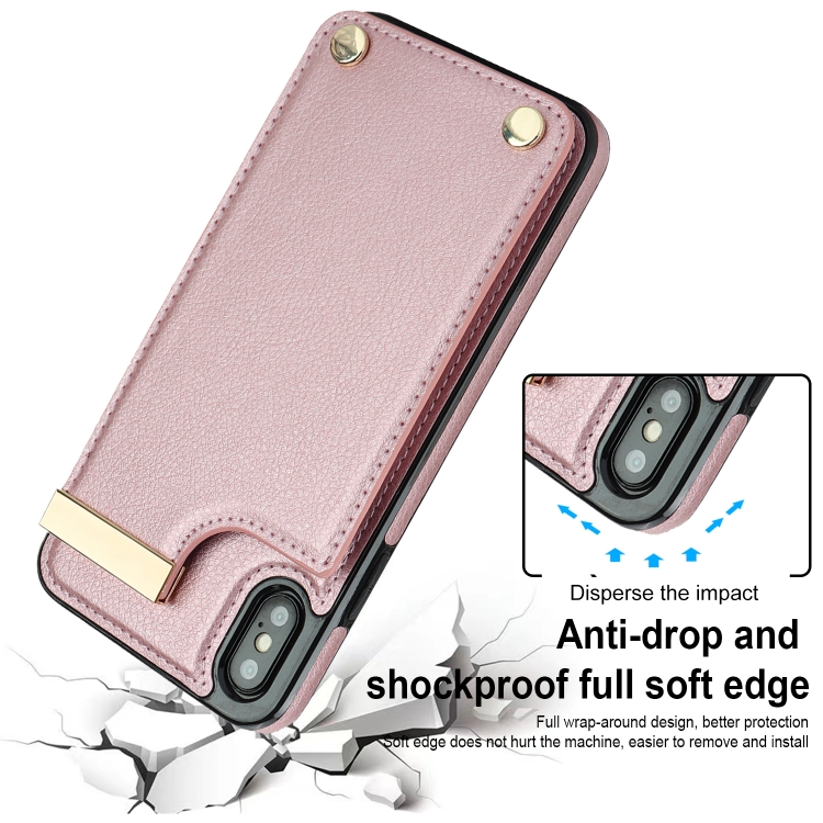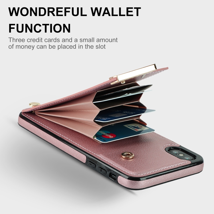 Funda para iPhone Xs Max Metal Hebilla Ranuras para Tarjetas (Oro Rosa)