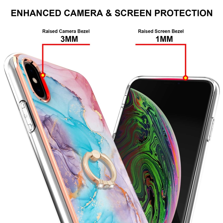 Estuche TPU iPhone Xs Max Patrón Galvanoplastia Imd Soporte Anillo Diamantes (Mármol Azul)