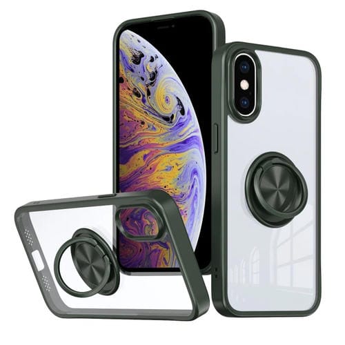 Funda para teléfono iPhone Xs Max Ring Holder PC Hybrid TPU (Verde)