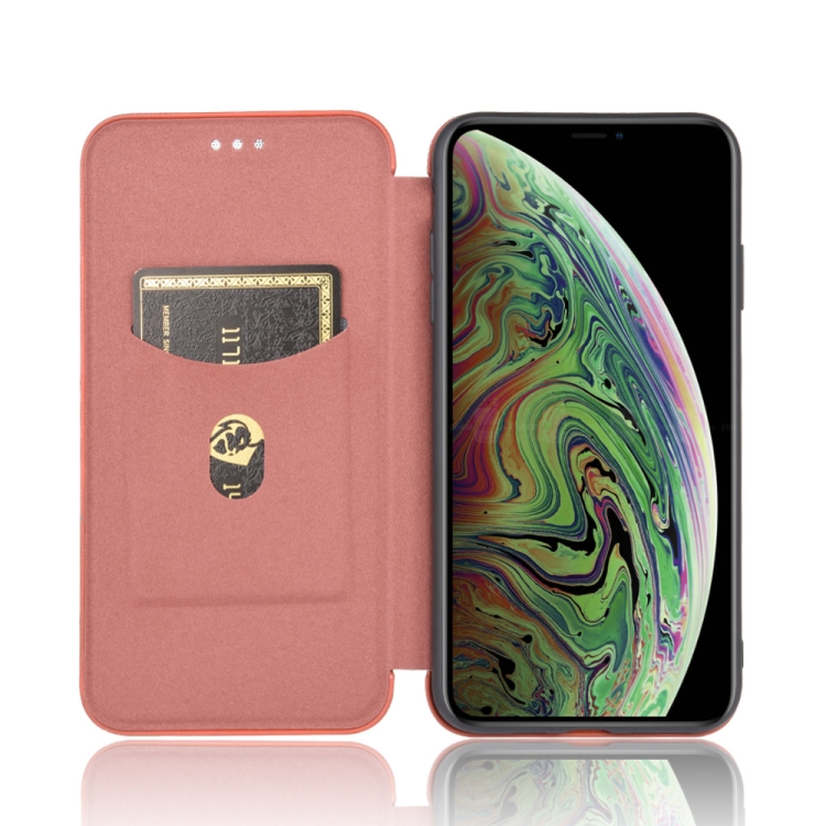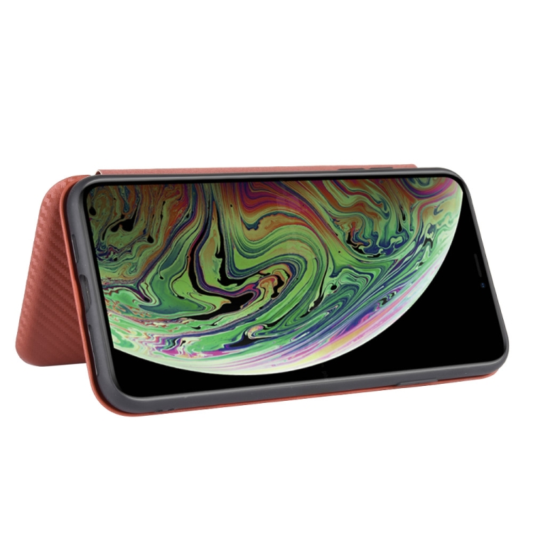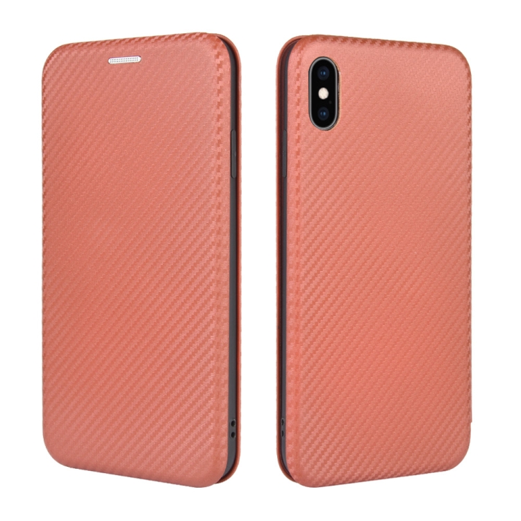 Funda para iPhone Xs Max Textura de Fibra de Carbono Flip Horizontal TPU + PC + Cuero PU con Ranura para Tarjeta (Marrón)