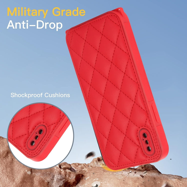 Estuche para Teléfono iPhone Xs / X Textura Rómbica con Cordón Doble (Rojo)