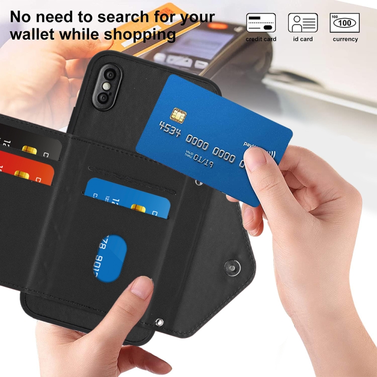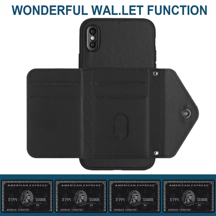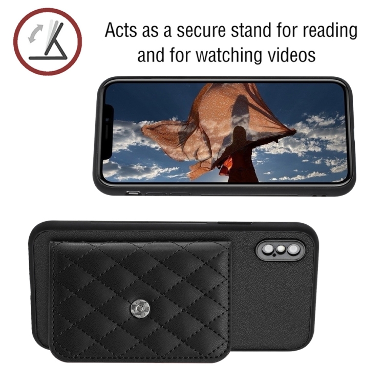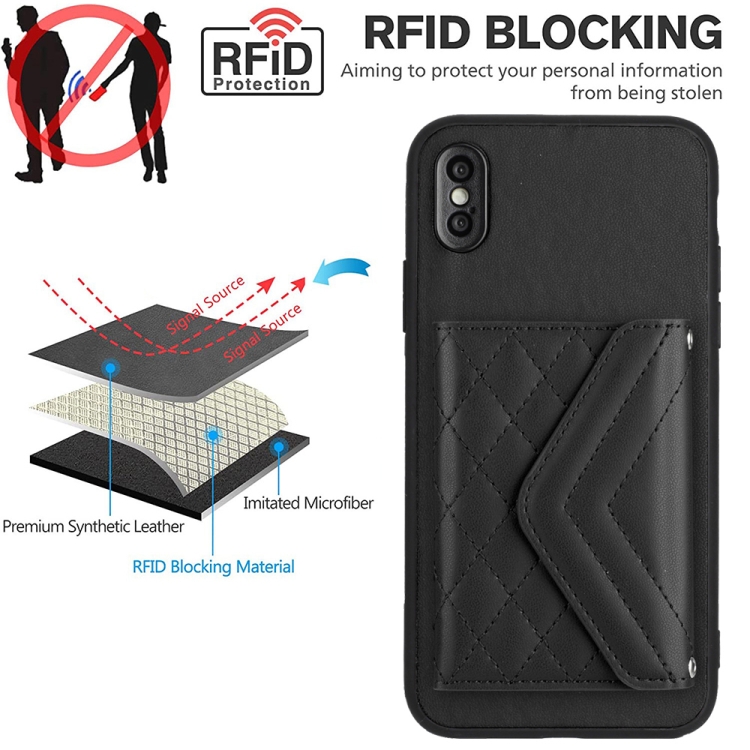 Estuche para Teléfono iPhone Xs / X Rfid con Bolsa para Tarjetas Textura Rómbica y Cordón Largo (Negro)
