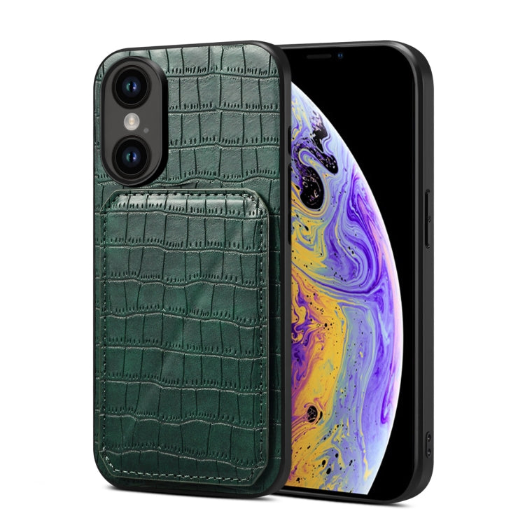 Funda Trasera para iPhone Xs / X de Piel de Cocodrilo de Imitación con Soporte (Verde)