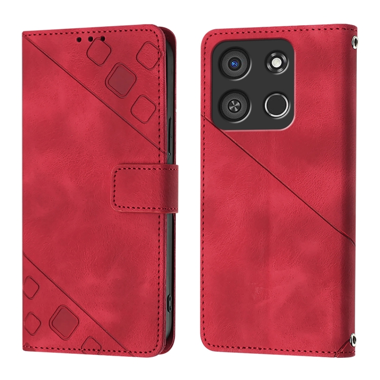 Funda de Cuero para Itel A05S Skin Feel en Relieve (Rojo)