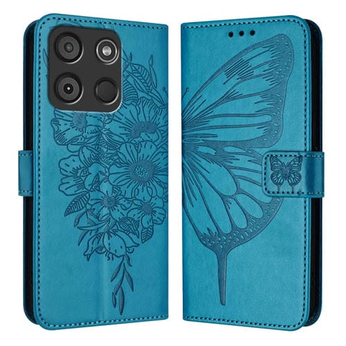 Funda de Cuero para Teléfono Itel A60 / A60S con Mariposa en Relieve (Azul)