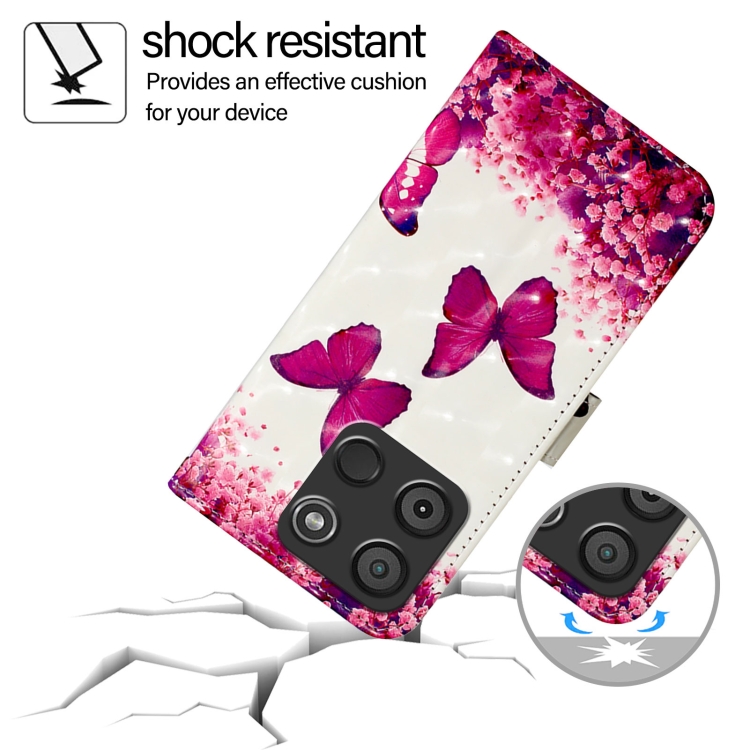 Funda para Itel A60 / A60S de Cuero con Tapa Horizontal y Pintura 3D (Mariposa Rosa)