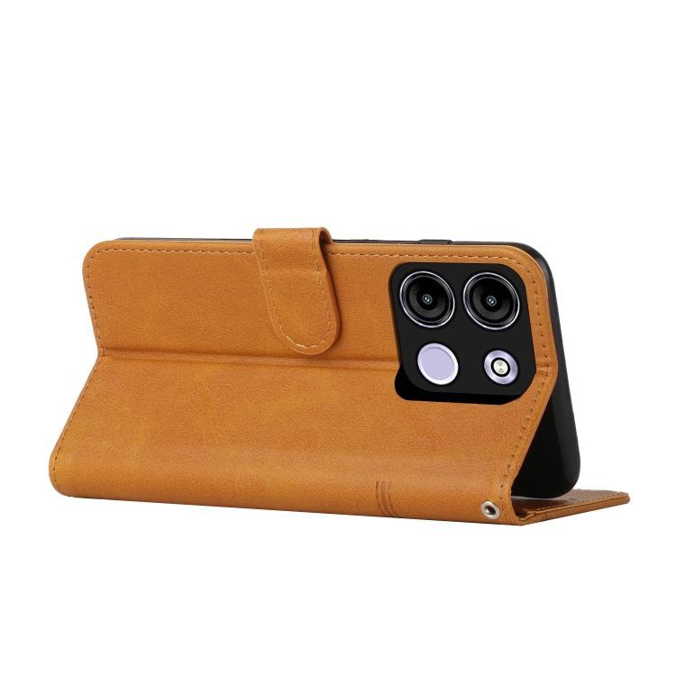 Funda para Teléfono Itel A60S Cuero con Hebilla y Textura de Becerro (Amarillo)