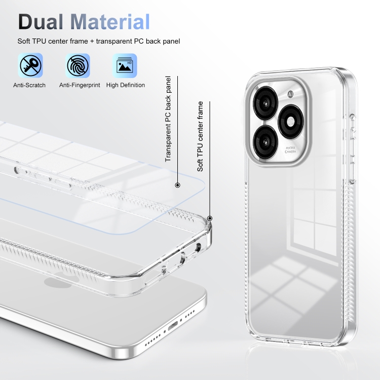 Funda de Teléfono Itel A70 TPU Híbrida Acrílico Transparente Antideslizante 2,5mm (Transparente)