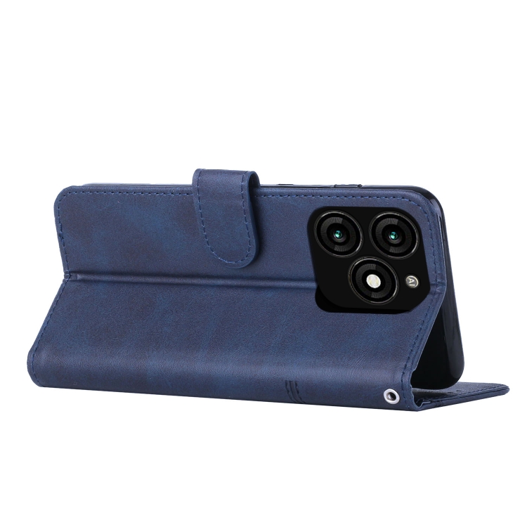 Funda para Teléfono Itel A70 Cuero con Hebilla Textura de Becerro Costura (Azul)