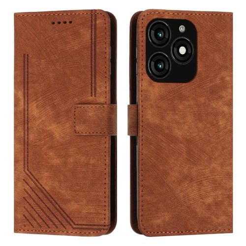 Funda de Cuero para Itel A70 Skin Feel con Patrón de Rayas y Cordón (Marrón)