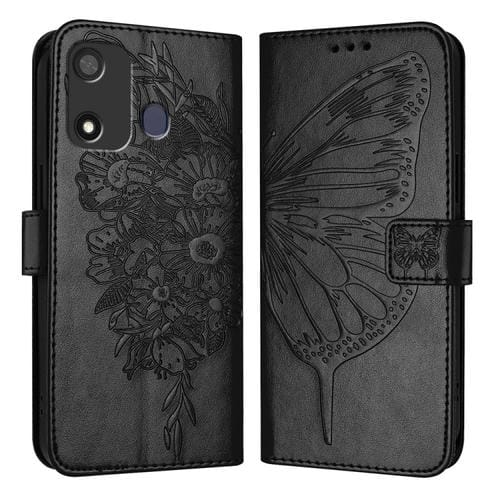 Funda de Cuero para Itel P17 y A27 con Mariposa en Relieve (Negro)