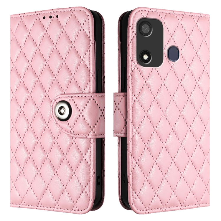 Funda para Teléfono Itel P17 / A27 de Cuero con Tapa Textura Rómbica y Cordón (Rosa)