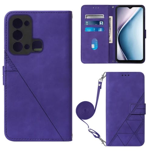Funda de Cuero con Tapa en Relieve 3D para Itel P38 S17 Vision 3 Crossbody (Púrpura)
