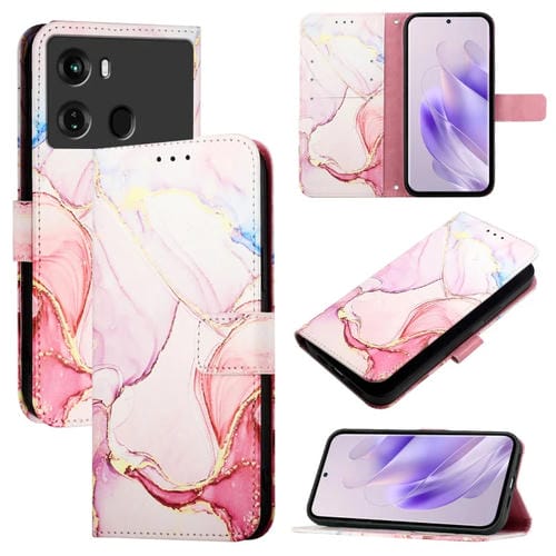 Funda de Cuero para Itel P40 Pt003 con Tapa y Patrón de Mármol (Oro Rosa)