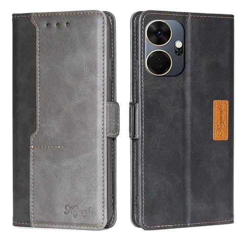Funda de Cuero para Itel P55 + 4G con Hebilla Lateral y Color en Contraste (Negro + Gris)