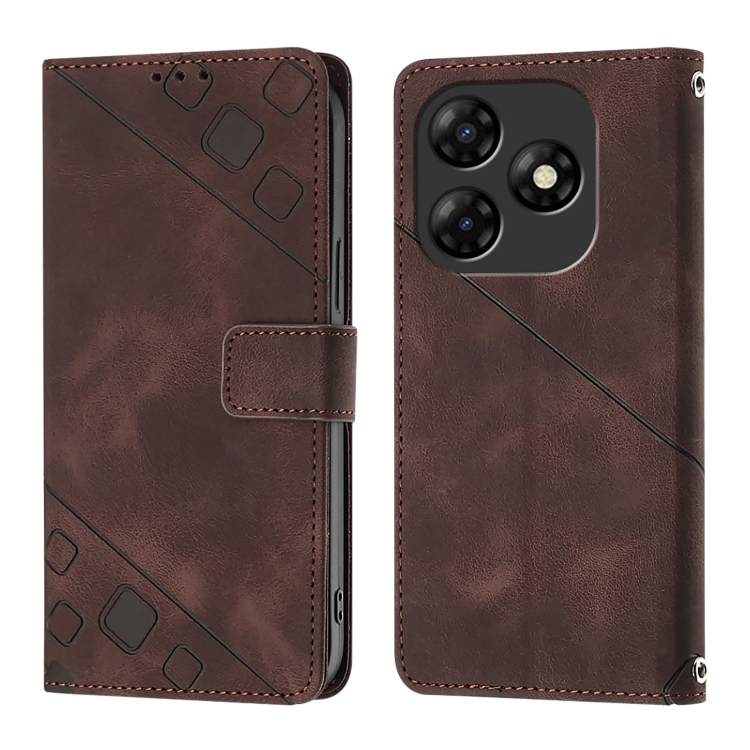 Funda de Cuero para Itel P55 4G Skin Feel en Relieve (Marrón)