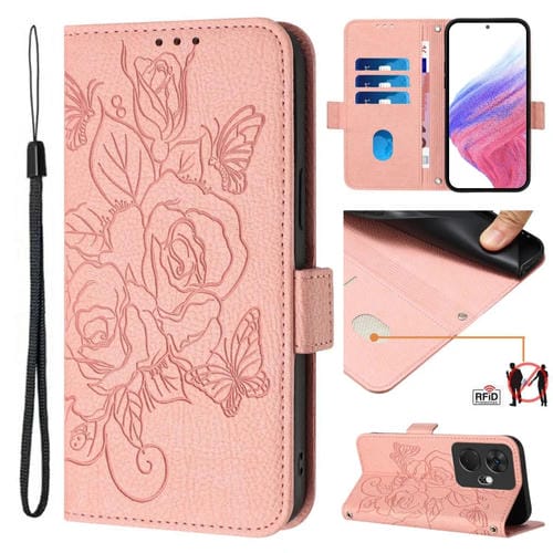Estuche para Itel P55 de Cuero Antirrobo RFID con Rosa en Relieve (Rosa)
