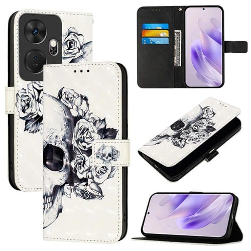 Funda de Cuero con Tapa Horizontal para Itel P55 con Pintura 3D (Calavera)