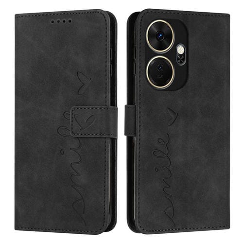 Funda de Cuero con Relieve y Cordón Largo para Itel P55 (Negro)