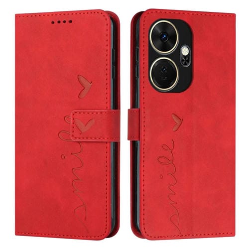 Funda de Cuero para Itel P55 con Relieve y Cordón Largo (Rojo) Skin Feel Heart