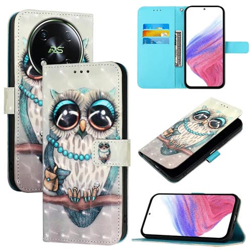 Funda para Itel Rs4 de Cuero con Tapa Horizontal y Pintura 3D (Búho Gris)