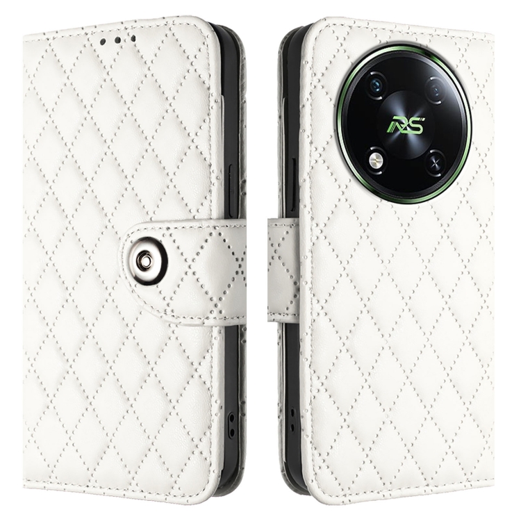 Funda para Itel Rs4 S666Ln de Cuero con Tapa, Textura Romboidal y Cordón (Blanco)