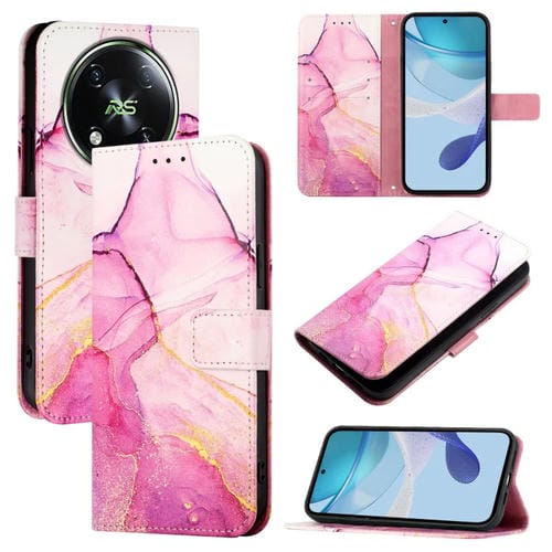 Funda de Cuero con Tapa para Itel Rs4 S666Ln Pt003 con Patrón de Mármol (Rosa, Morado y Dorado)