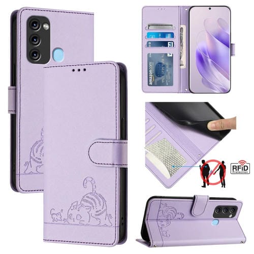 Estuche para Teléfono Itel S17 S661W Vision 3 Cat Rat Cuero RFID con Patrón y Cordón (Púrpura)