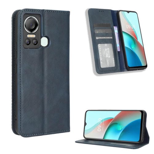 Funda de Cuero con Hebilla Magnética para Itel S18 S663L Textura Retro (Azul)
