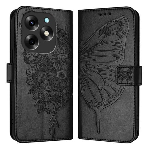 Funda de Cuero para Itel S23 con Mariposa en Relieve (Negro)