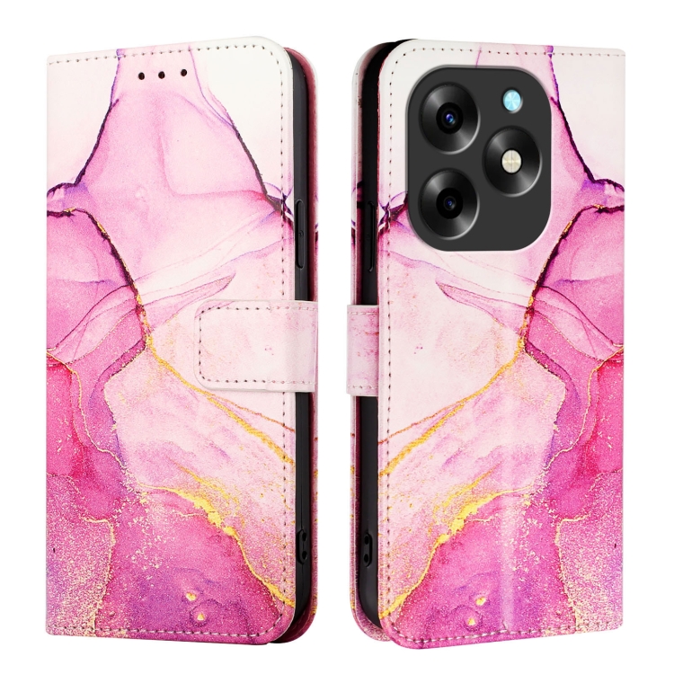 Funda de Cuero con Tapa para Itel S23 + Pt003 con Patrón Mármol (Rosa, Morado y Dorado)