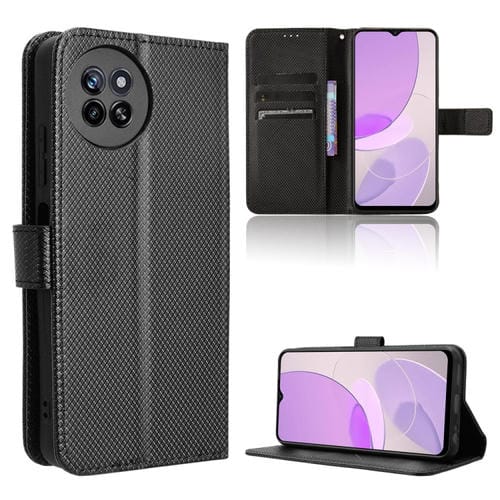 Funda de Cuero para Itel S23 S665L con Textura de Diamante (Negro)