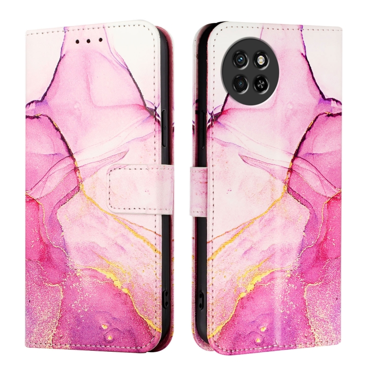 Funda de Cuero con Tapa para Itel S23 S665L Pt003 con Patrón de Mármol (Rosa, Morado y Dorado)