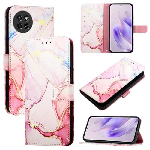 Funda para Teléfono Itel S23 S665L Pt003 Cuero con Tapa y Patrón de Mármol (Oro Rosa)