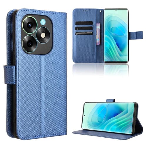 Funda de Cuero para Itel S23 + S681Ln con Textura de Diamante (Azul)