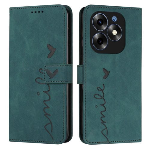 Funda para Itel S23 Skin Feel Heart de Cuero en Relieve con Cordón Largo (Verde)